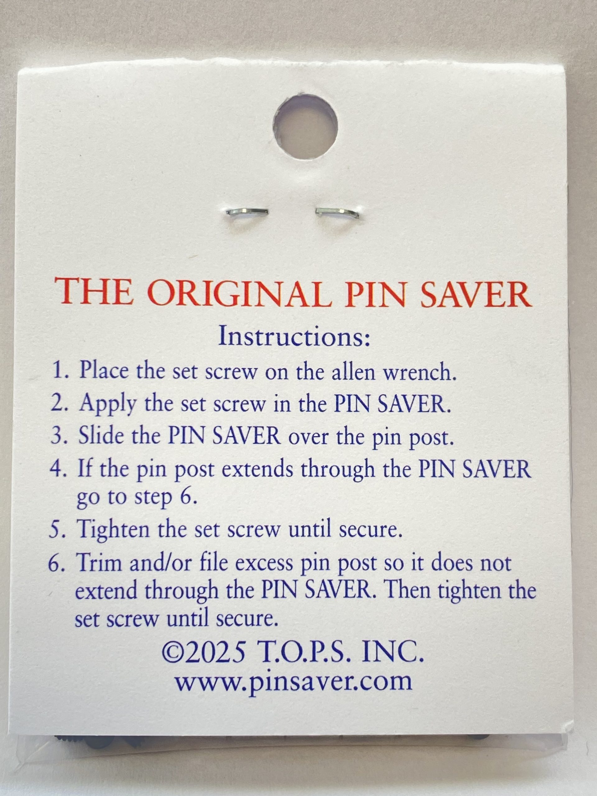 The Original PIN SAVER replaces the standard clutch backing found on most pins. It’s more secure due to the utilization of a set screw, which results in “Never Losing a Pin Again”.